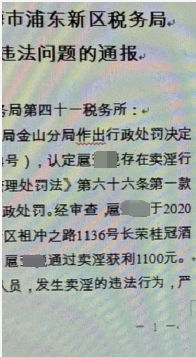 各微信群里流传出来的是疑似公安机关对扈某所在税务所作出的《关于上海市浦东新区税局扈某……违法问题通报》的截图: